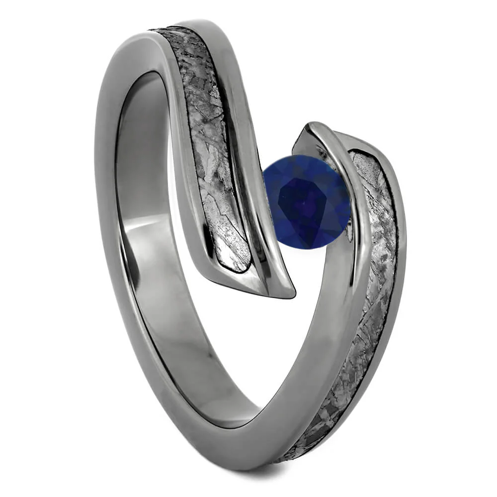 Ring 1: Tension Set Sapphire & Meteorite Engagement Ring (SKU 4319)