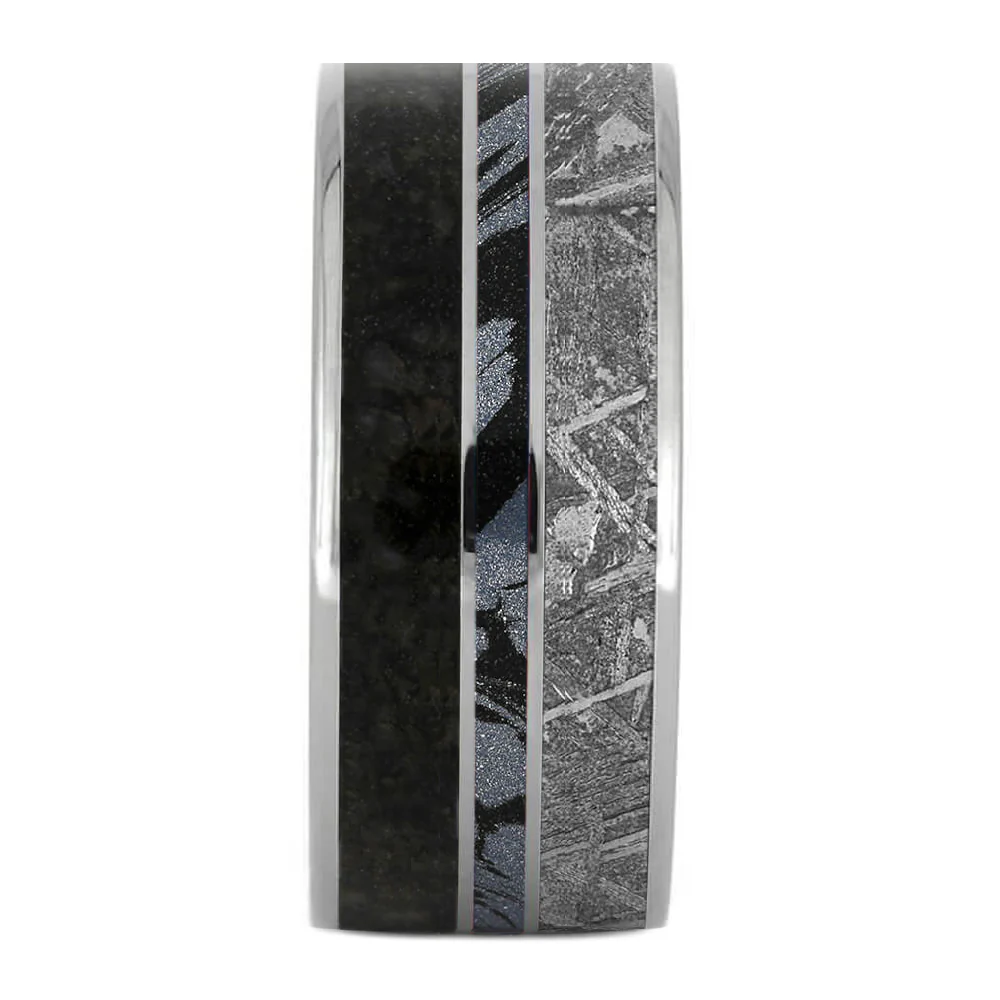 Cobaltium Composite Mokume Ring with Dinosaur Bone and Meteorite