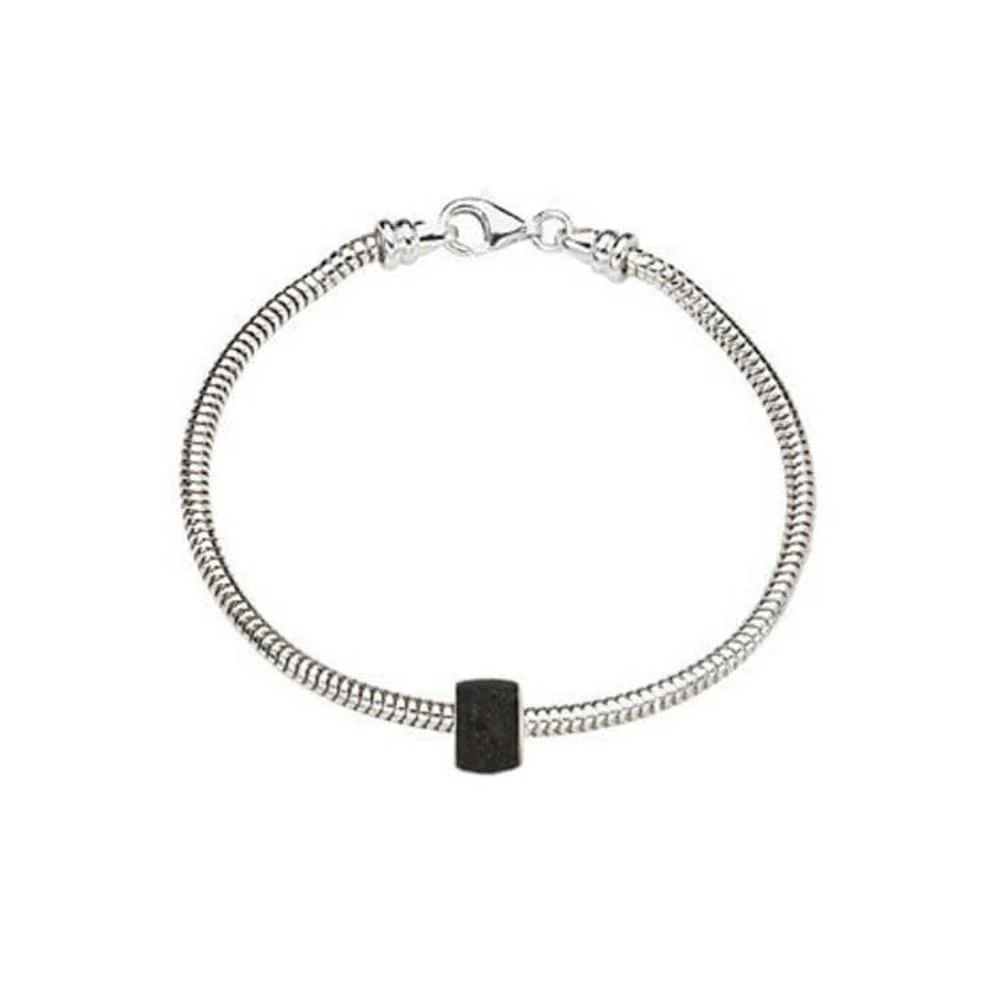 Add a prehistoric look to your every day attire with this dinosaur bone charm bead bracelet. The sterling silver fossil bead hangs on a snake bracelet available in a variety of lengths.