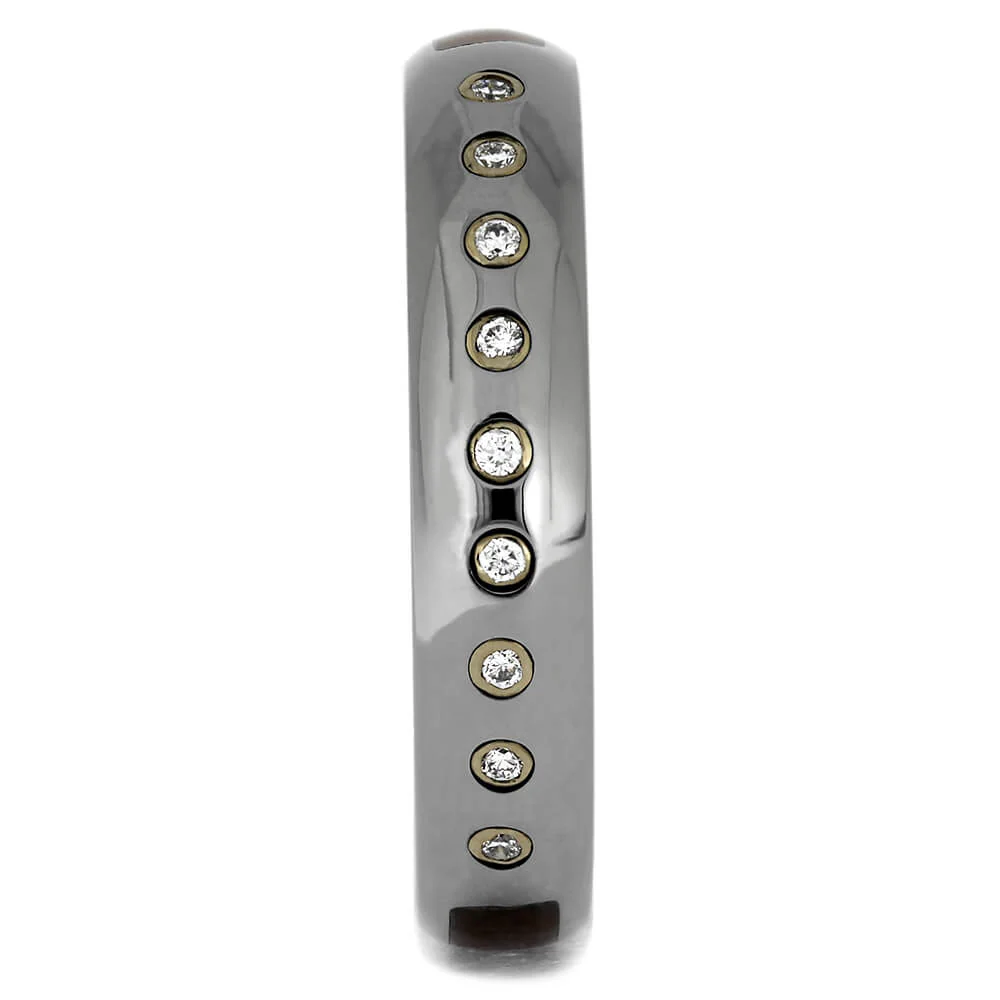 Honduran Rosewood Burl and Titanium Ring with 9 Bezel Set Diamonds