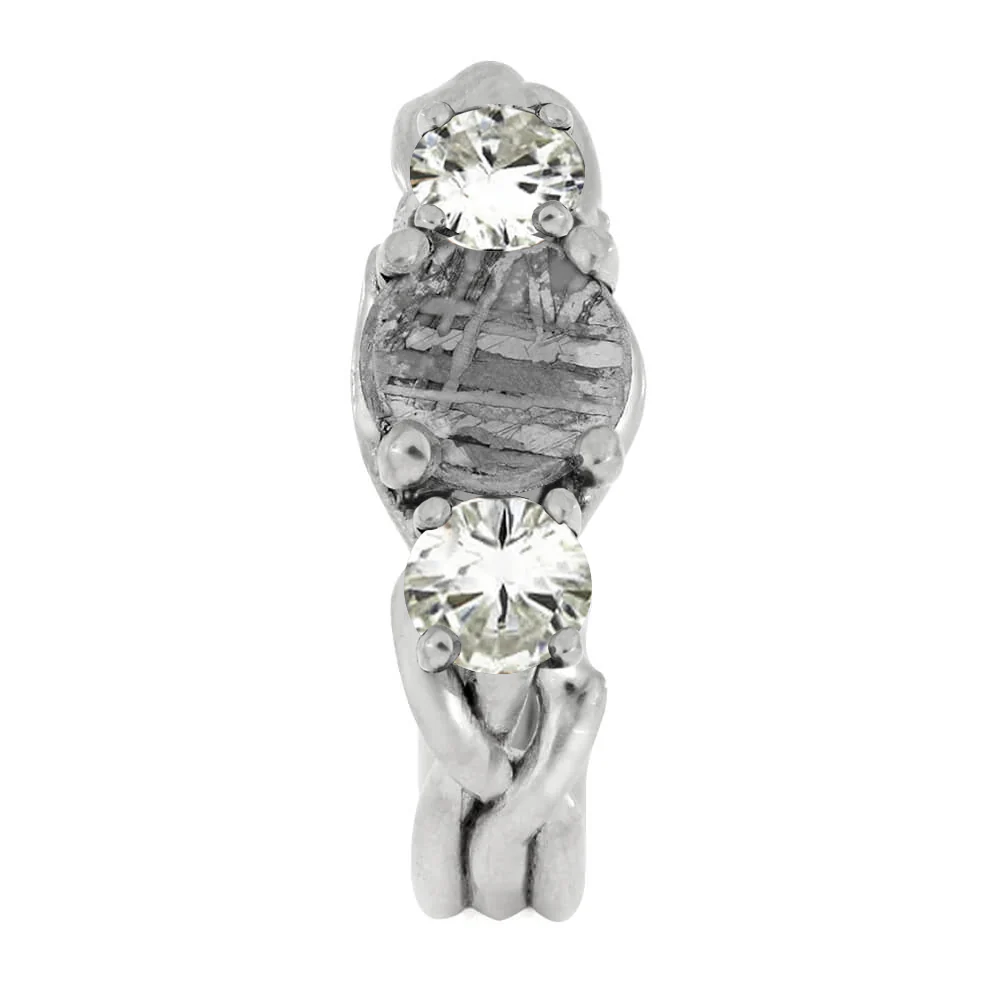 Meteorite Stone Engagement Ring with Moissanite Accents