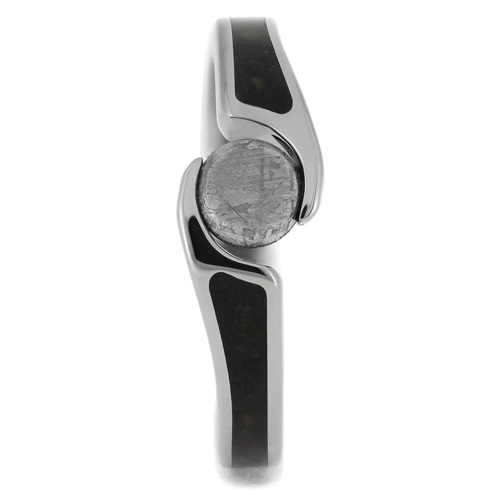 Meteorite Stone Engagement Ring with Dinosaur Bone Inlay