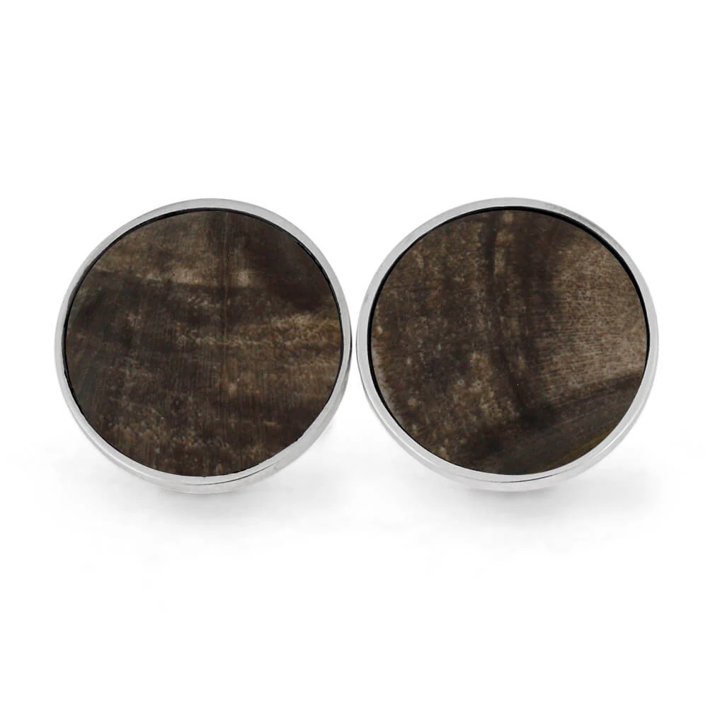 Surprise your groom with this unique pair of petrified wood cuff links. Petrified wood is formed when wood and other natural materials become fossilized over time.