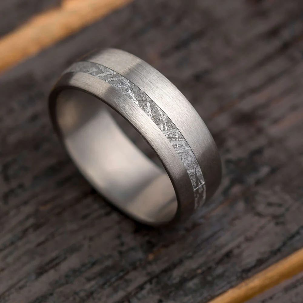 Rugged Men's Meteorite Wedding Band With Brushed Titanium