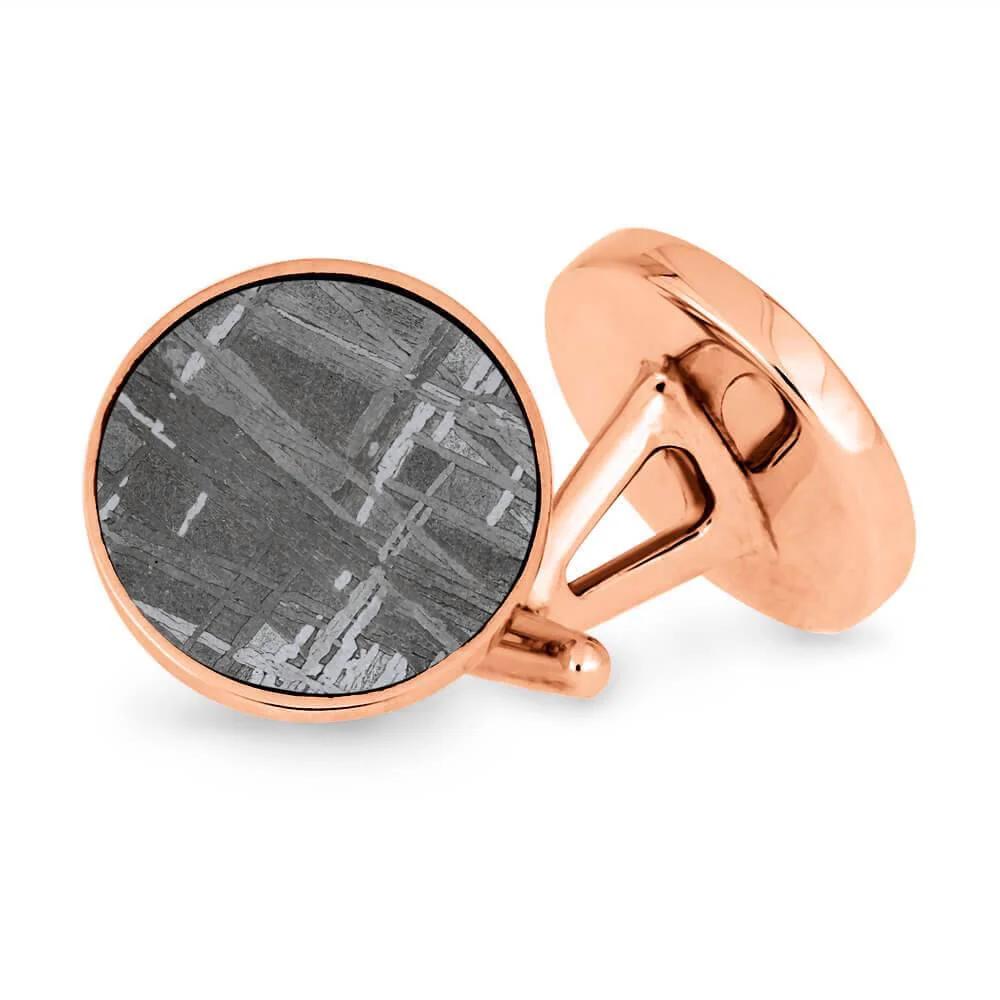 Round 10k or 14k Gold Gibeon Meteorite Cuff Links