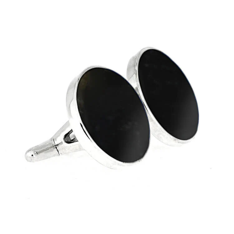 Round Black Cuff Links, Springbok Horn