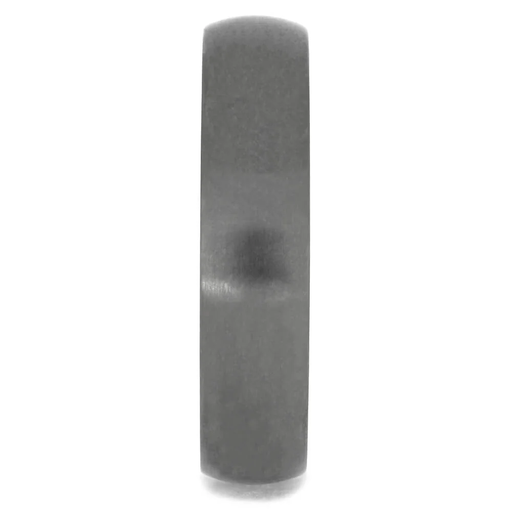 This titanium wedding band is laced with an incredible tulipwood sleeve. Wood wedding bands are a natural way to symbolize your special bond and enduring commitment to one another. Contrasting the red hued wood is a matte-finished titanium overlay.